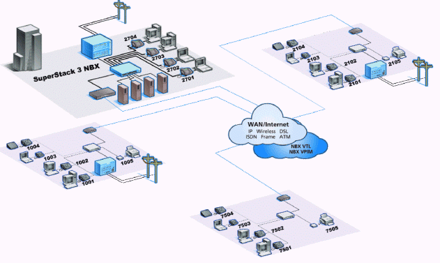 內(nèi)部兩網(wǎng)合一:管理、維護(hù)、升級方便靈活NBX網(wǎng)絡(luò)呼叫中心的核心是3Com公司的NBX網(wǎng)絡(luò)電話交換機(jī),它具有PBX的功能,支持多種外線接入方式,呼入的語音信號轉(zhuǎn)換為數(shù)據(jù)包,在局域網(wǎng)內(nèi)部傳輸,實現(xiàn)局域網(wǎng)內(nèi)部語音、數(shù)據(jù)的統(tǒng)一。
