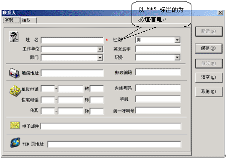 在地址簿中按鼠標右鍵,在彈出的菜單中選擇“新鍵地址簿記錄”選項,就會彈出新建聯(lián)系人對話框,在這里添入相應的內(nèi)容,您的一個新用戶通訊錄就建立完畢了。