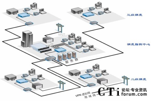 根據(jù)實際情況,總部可以部署調度控制中心,遠端部署二級調度和三級調度終端,PSTN網(wǎng)關可以根據(jù)實際需要部署在任一點位。