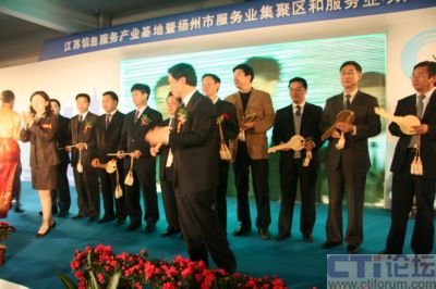4月21日,江蘇信息服務產(chǎn)業(yè)基地暨揚州市服務業(yè)集聚區(qū)和服務業(yè)項目推介洽談會在江蘇信息服務產(chǎn)業(yè)基地(揚州)隆重召開,省信息產(chǎn)業(yè)廳副廳長龔懷進、揚州市委常委、常務副市長張京霞為省信息安全技術(shù)中心揭牌,中國網(wǎng)通集團公司總工程師滕勇,神州數(shù)碼高級副總裁陳勇,上海萬得信息股份董事長陸風等數(shù)十位集團公司老總現(xiàn)場祝賀,同時IBM、AVAYA、優(yōu)勝資訊、神州數(shù)碼等60多家企業(yè)現(xiàn)場簽定了投資合作協(xié)議,而華潤通信、中國電信、酒店無憂、漢世紀等10家企業(yè)則從廣陵區(qū)委書記孔令俊手中接過了入駐金鑰匙,成為首批入駐江蘇信息服務產(chǎn)業(yè)基地的企業(yè),至此江蘇信息服務產(chǎn)業(yè)基地迎來首發(fā)項目招商的“開門紅”,江蘇信息服務產(chǎn)業(yè)基地也因此被業(yè)界冠以中國首家專業(yè)定位信息呼叫和數(shù)據(jù)處理產(chǎn)業(yè)的“中國聲谷”的美譽。 “江蘇信息服務產(chǎn)業(yè)基地(揚州)”位于廣陵新城內(nèi),為省信息產(chǎn)業(yè)廳與揚州市政府聯(lián)手打造的中國首家專業(yè)定位于呼叫信息和數(shù)據(jù)處理產(chǎn)業(yè)的省級信息服務業(yè)基地,占地2.52平方公里,總投資50億元,處于揚州ECBD核心區(qū)域,交通便捷,區(qū)位優(yōu)勢獨特,生態(tài)環(huán)境優(yōu)美。基地按照“產(chǎn)業(yè)社區(qū)”的標準和“商務公園”的理念規(guī)劃建設,重點發(fā)展信息服務產(chǎn)業(yè)及具有揚州特色的城市信息化應用軟件和嵌入式軟件產(chǎn)業(yè),立足長三角、面向全國、服務世界,逐步發(fā)展成為全國乃至世界呼叫中心產(chǎn)業(yè)最佳實踐基地、全國生產(chǎn)性服務業(yè)的標桿示范基地及呼叫中心人才培訓與派遣基地。