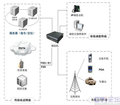 - 線調(diào)度終端包括:手機(jī)、PDA、車(chē)載臺(tái)等無(wú)線設(shè)備――這些設(shè)備通過(guò)無(wú)線基站連接到有線網(wǎng)絡(luò),分別配備不同的調(diào)度軟件實(shí)現(xiàn)調(diào)度功能。