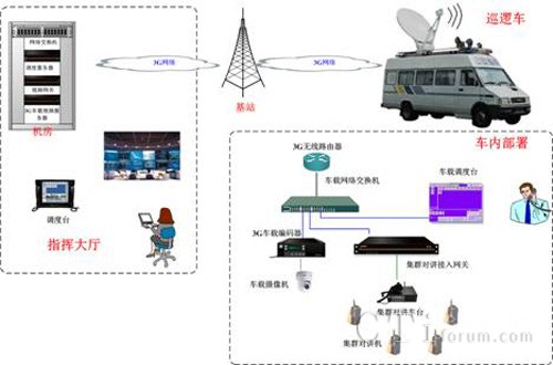通過3G公網實現指揮中心和應急車之間的網絡,保證語音視頻通過3G公網傳輸。
