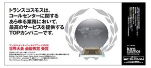 引進國際領先的MO3(獲得2006 “Contact Center World Award” 最優(yōu)秀獎)呼出技術:MO3是母公司transcosmos獨力研發(fā)的呼出服務體系。通過對數(shù)據(jù)的充分分析和挖掘,以“顧客行動模式”為基礎,預測“哪個顧客、哪個坐席、在哪個時間點、提供什么樣的服務、進行怎樣的進一步接觸”,以及精確計算是否收到最大投資和成效比(ROI),實行最有效的和顧客接觸的運營。