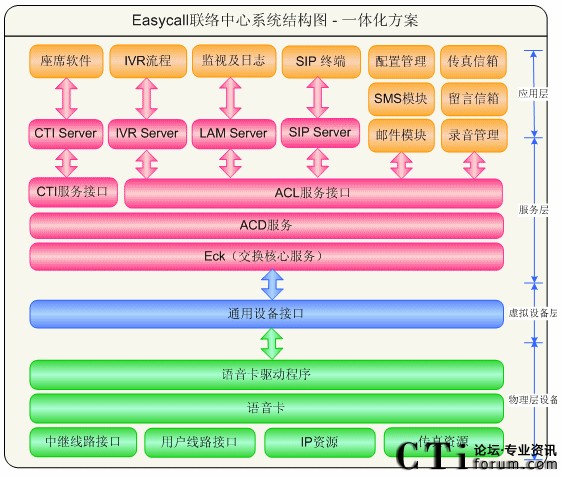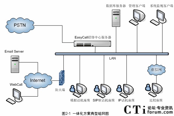 圖2-3 EasyCall聯(lián)絡中心系統(tǒng)結構圖-一體化方案