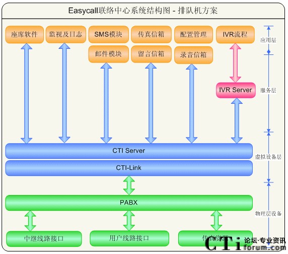 圖2-4 EasyCall聯(lián)絡中心系統(tǒng)結構圖-排隊機方案