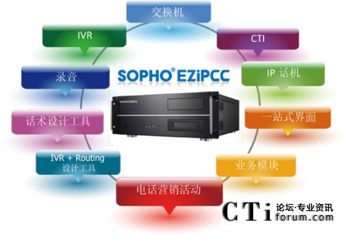 SOPHO EZiPCC(簡稱EZiPCC) 基于IP為核心技術(shù)的平臺,以All-In-One 的設(shè)計(jì)理念,提供一體化呼叫 中心解決方案,其中包含了呼叫中心所需要的基本話務(wù)系統(tǒng),例如:PBX,IVR,Recording,CTI