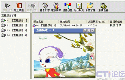 上圖中一個頻道就對應實際需要在網(wǎng)絡(luò)上發(fā)布的節(jié)目文件或者一個電視頻道的節(jié)目。
