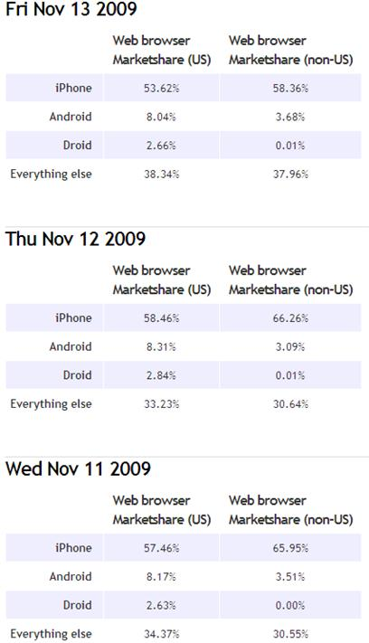 首款A(yù)ndroid 2.0智能手機(jī)摩托羅拉Droid在美國上市剛剛一個星期,不過這款CDMA手機(jī)贏得了極大的歡迎,其銷量很快就超過了同時發(fā)布的HTC Droid Eris。根據(jù)11月12日的統(tǒng)計數(shù)據(jù),摩托羅拉Droid已經(jīng)占據(jù)了美國全部移動網(wǎng)絡(luò)流量的2.84%。