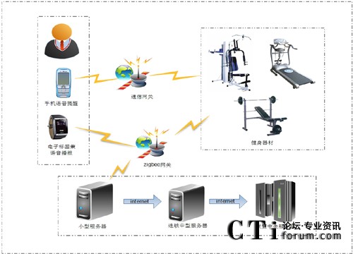 基于物聯(lián)網(wǎng)的綜合信息管理健身系統(tǒng),以下簡(jiǎn)稱物聯(lián)網(wǎng)健身系統(tǒng)----IOT Fitness system(IOTFS),本系統(tǒng)是將物聯(lián)網(wǎng)技術(shù)(ZIGBEE、GPRS等傳輸方式)以及語音合成技術(shù)(TTS)的應(yīng)用集成于一體。技術(shù)方案主要利用無線通訊技術(shù)、射頻技術(shù)、電子技術(shù)、計(jì)算機(jī)技術(shù)、信息網(wǎng)絡(luò)技術(shù)、傳感技術(shù)等高科技術(shù)的設(shè)備和軟件所組成,以構(gòu)建完善的客戶健身服務(wù)系統(tǒng)和健身房運(yùn)營(yíng)系統(tǒng)相結(jié)合的統(tǒng)一的信息管理健身系統(tǒng)。