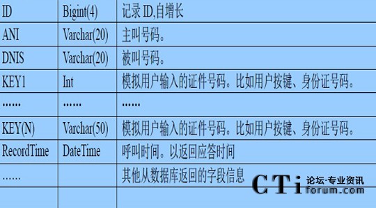外撥任務(wù)數(shù)據(jù)庫包含了系統(tǒng)外撥時需要的所有數(shù)據(jù)。 呼叫任務(wù)數(shù)據(jù)庫包含如下字段:
