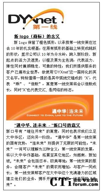 CTI論壇(ctiforum)08月20日消息: 知名網(wǎng)絡(luò)服務(wù)商第一線安萊,十年間憑借經(jīng)驗(yàn)豐富的團(tuán)隊(duì),靈活的服務(wù)、可靠的網(wǎng)絡(luò)系統(tǒng)等,遙遙領(lǐng)先于眾多競爭對(duì)手,傲然屹立于大中華地區(qū)。目前,正值第一線安萊十周年慶之際,全新的企業(yè)商標(biāo)和“通中華.連未來”的新口號(hào)也向大眾展示。公司提出將幫助客戶實(shí)現(xiàn)“立足大中華,拓展全世界”的愿景。