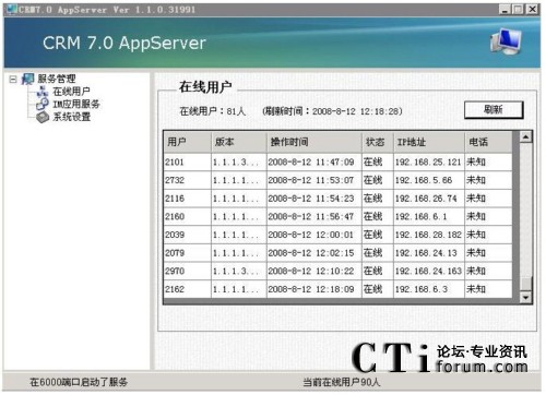 從下圖的列表可以看到實(shí)時的用戶連接數(shù),每個客戶端的CPU序列號,硬盤序列,和唯一的登陸序列。并且可以選擇指定的用戶,對用戶做強(qiáng)迫下線,發(fā)送消息,截取用戶屏幕等操作。