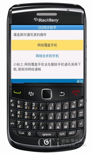 圖:通過(guò)BlackBerry Bold 9788登陸QQ同步助手