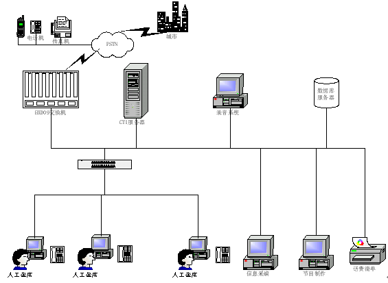 1) 數(shù)據(jù)庫系統(tǒng): 存放各類待查信息數(shù)據(jù)、話務統(tǒng)計數(shù)據(jù)、話務員操作明細數(shù)據(jù)等;