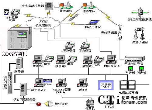 隨著國(guó)民經(jīng)濟(jì)的不斷發(fā)展,我國(guó)城市的現(xiàn)代化進(jìn)程在不斷加快,因而對(duì)消防部隊(duì)的反應(yīng)速度、調(diào)度指揮、現(xiàn)場(chǎng)搶險(xiǎn)救災(zāi)等綜合能力要求越來(lái)越高.現(xiàn)代化的消防通信指揮系統(tǒng)是受理火災(zāi)報(bào)警、實(shí)施通訊調(diào)度指揮、執(zhí)行滅火救災(zāi)工作的必不可少的技術(shù)裝備,它對(duì)于保護(hù)國(guó)家和人民生命財(cái)產(chǎn)的安全、保障經(jīng)濟(jì)建設(shè)的順利發(fā)展、維護(hù)社會(huì)的穩(wěn)定有著十分重要的意義.,恒訊達(dá)公司的(HXD09)交換機(jī)切合實(shí)際,綜合應(yīng)用現(xiàn)代通信技術(shù)、計(jì)算機(jī)網(wǎng)絡(luò)技術(shù)、結(jié)合地理信息技術(shù)、VOIP、虛擬現(xiàn)實(shí)技術(shù),開(kāi)發(fā)了網(wǎng)絡(luò)化、智能化、可視化的、高度模塊化、以技術(shù)先進(jìn)、組網(wǎng)靈活、整體性強(qiáng)、實(shí)時(shí)性高、安全可靠、實(shí)用高效為特點(diǎn)的可編程智能語(yǔ)音交換機(jī),HXD09交換機(jī)接口易開(kāi)放性,結(jié)合圖形化的流程生成器和二次開(kāi)發(fā)接口,為119系統(tǒng)平臺(tái)開(kāi)發(fā)商提供強(qiáng)大的平臺(tái)保證。