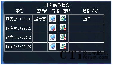 可以將本調(diào)度席暫時置為“忙”的狀態(tài),此時電話將不再分配入組,直至再點擊“置閑”按鈕,恢復正常狀態(tài)。