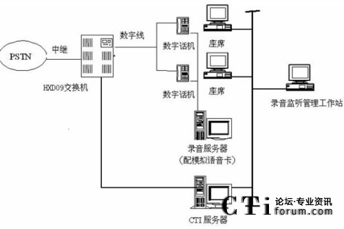 本系統(tǒng)物理結構HXD09交換機、CTI服務器、IVR(交互式語音應答)/IFR(交互式傳真應答)服務器、統(tǒng)計維護管理工作站、數(shù)據(jù)庫/應用服務器、錄音工作站、網(wǎng)絡系統(tǒng)等構成。