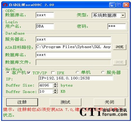 作為網(wǎng)絡版的客戶端,需配置服務器的IP地址及端口號(端口號為2638)