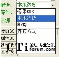 類:表示送貨方式,如下圖:A、B、C、D分別對應橡果EMS、本地送貨、郵寄、其它方式(從上往下的順序),一般都為B即本地送貨的方式。