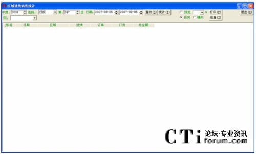 設定好相應的時間,先點擊統(tǒng)計,再點擊查找即可顯示各個區(qū)域的總進線、總訂單、總訂貨數(shù)及總金額。