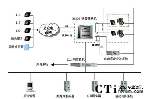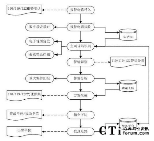 該系統(tǒng)主要分為電信子系統(tǒng)(完成聯(lián)動(dòng)中心與各電信公司之間話音的傳輸、交換和分配,以及主叫號(hào)碼和主叫地址的自動(dòng)查詢和傳輸?shù)龋⒔泳行淖酉到y(tǒng)(統(tǒng)一接聽和處理市民的報(bào)警、求助電話)、指揮調(diào)度子系統(tǒng)(或稱為處警中心,通過直觀的地理信息系統(tǒng)和數(shù)據(jù)庫(kù),可以對(duì)所有的資源和警力分布了如指掌。通過一體化的無線數(shù)據(jù)傳輸和無線調(diào)度臺(tái)進(jìn)行方便的統(tǒng)一管理,指揮和調(diào)度)、信息網(wǎng)絡(luò)子系統(tǒng)(聯(lián)動(dòng)中心的骨干網(wǎng)絡(luò),把各種數(shù)據(jù)數(shù)庫(kù)、接處警席位、移動(dòng)的警用車載計(jì)算機(jī)等互聯(lián)在一起,形成一個(gè)強(qiáng)大的信息網(wǎng)絡(luò))、無線指揮調(diào)度通信子系統(tǒng)、大屏幕顯示子系統(tǒng)、地理信息子系統(tǒng)、GPS/GIS子系統(tǒng)。