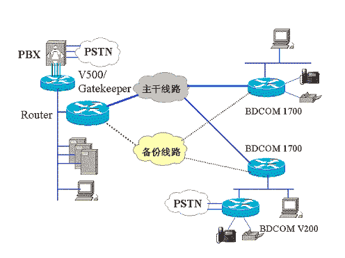 500作為Gatekeeper的Server端,V 200 作為Client端,實現(xiàn)語音和數(shù)據(jù)集成應用。