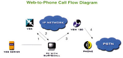 VocalTec公司的網(wǎng)上呼叫(Surf&Call)網(wǎng)絡(luò)客戶軟件5.0(Web Client5.0),可提供語音增值電子商務(wù)服務(wù)以及通過IP網(wǎng)的網(wǎng)絡(luò)到電話呼叫業(yè)務(wù)。Surf&Call是一種面向基于互聯(lián)網(wǎng)電信應(yīng)用的獨(dú)特網(wǎng)絡(luò)軟件,可通過互聯(lián)網(wǎng)使任何網(wǎng)站與普通電話實(shí)現(xiàn)語音連接,是VocalTec整體架構(gòu)的一部分。Surf&Call為網(wǎng)頁提供一個按鈕,上網(wǎng)者單擊該按鈕,就可與座席通話。在大多數(shù)瀏覽器環(huán)境下,在瀏覽需要利用Surf&Call軟件的頁面時(shí),Surf&Call可自動下載和安裝。
