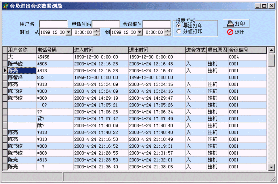 可對(duì)歷史會(huì)議記錄進(jìn)行管理,查看記錄內(nèi)容幾錄音文件(WAV文件格式),以便回放調(diào)聽,可對(duì)報(bào)表進(jìn)行導(dǎo)出或打印操作