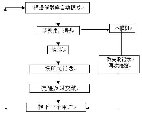。。(1)計(jì)算機(jī)自動(dòng)進(jìn)行催費(fèi)工作,不需要配置專門的話費(fèi)催繳人員,省去了很多人力、物力、財(cái)力,如碰到關(guān)機(jī)、不在服務(wù)區(qū)、撥叫的用戶正忙會(huì)自動(dòng)重復(fù)撥打(撥打次數(shù)可以自己設(shè)置,催繳速度快、效率高),態(tài)度始終如一。