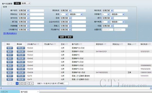 例如,以區(qū)域為條件進行搜索,區(qū)域選擇北京后,點擊查詢,你想要的北京區(qū)域的客戶全部出現(xiàn)在客戶列表中。