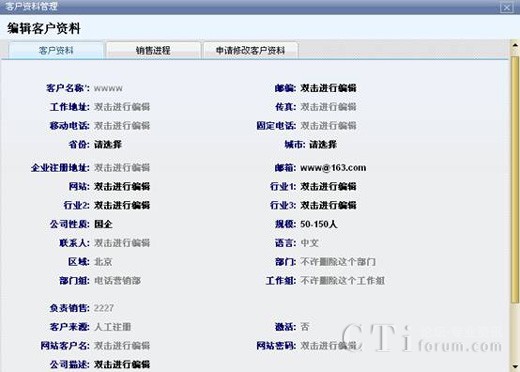 新添加的客戶會出現(xiàn)在客戶列表中。雙擊任一條客戶信息,可以查看其詳細的客戶資料。也可以根據(jù)業(yè)務(wù)需要對客戶執(zhí)行“釋放”或“黑名單”功能。