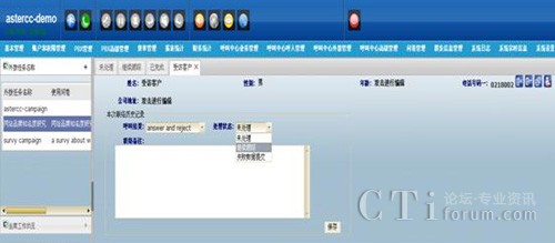 客戶資料獲取后,坐席將開始對該客戶進行問卷調(diào)查,下方便會自動彈出坐席需要陳述的該項目問卷信息(坐席可根據(jù)需要進行全屏或半屏操作),astercc問卷系統(tǒng)為您提供了雙重便捷式的服務。