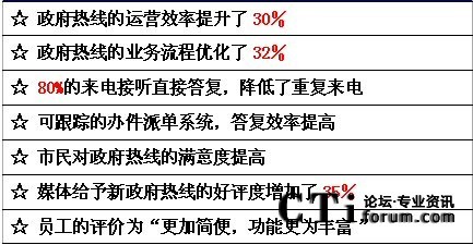 在我們的采訪中,深圳市政府認(rèn)為,建設(shè)法治政府、廉潔政府、效率政府、有限政府、陽(yáng)光政府和責(zé)任政府,前提是政府必須完成轉(zhuǎn)型。政府行政體制改革的最終目標(biāo)是要達(dá)到行政權(quán)力規(guī)范,服務(wù)型的一個(gè)政府。因而,為市民提供專業(yè)權(quán)威和有效的政府熱線服務(wù)成為題中之意。通過深圳市12345政府熱線的成功應(yīng)用,我們可以體會(huì)到呼叫中心應(yīng)用于政府及公用事業(yè)部門后,受益的不僅是千百萬公眾,更重要的是加速了在社會(huì)急劇變革時(shí)代政府職能的現(xiàn)代化轉(zhuǎn)型。