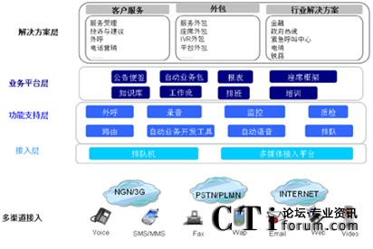 Smart CTI中間件是華為公司面向金融、外包、政府、緊急救援、能源等行業(yè)而推出的聯(lián)絡(luò)中心平臺(tái)。Smart CTI結(jié)合了CTI、Web和視頻技術(shù),提供多媒體接入和統(tǒng)一路由功能,讓客戶可以輕松快捷地構(gòu)建一個(gè)整合語(yǔ)音、視頻、傳真、短信、Web等能力的多媒體接觸中心。Smart CTI采用電信級(jí)的系統(tǒng)設(shè)計(jì),具有高可靠性和強(qiáng)大的處理能力,能夠支持多種綜合業(yè)務(wù)的受理,包括投訴、建議、咨詢、信息查詢、自動(dòng)和人工等業(yè)務(wù)。為了能夠更好地支撐聯(lián)絡(luò)中心運(yùn)營(yíng)維護(hù),還提供了分析型報(bào)表、知識(shí)庫(kù)、工作流、模擬開發(fā)環(huán)境、可視化IVR流程開發(fā)平臺(tái)等一系列輔助精細(xì)化運(yùn)營(yíng)軟件,幫助客戶實(shí)現(xiàn)業(yè)務(wù)快速上線、降低運(yùn)營(yíng)維護(hù)成本。Smart CTI采用了獨(dú)立于各種接入媒體的設(shè)計(jì)結(jié)構(gòu),具有良好的開放性和可擴(kuò)展性。采用業(yè)務(wù)和交換分離的設(shè)計(jì)思想,業(yè)務(wù)實(shí)現(xiàn)層及業(yè)務(wù)支撐層從傳統(tǒng)的網(wǎng)絡(luò)中分離出來,使業(yè)務(wù)實(shí)現(xiàn)層也具有良好的開放性和可擴(kuò)展性。Smart CTI包含了媒體接入、功能支撐、服務(wù)支撐等模塊,是華為IPCC系統(tǒng)的核心控制服務(wù)器。