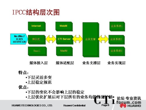 IPCC系統(tǒng)采用了獨(dú)立于各種接入媒體的設(shè)計(jì)結(jié)構(gòu),具有良好的開放性和可擴(kuò)展性。系統(tǒng)采用業(yè)務(wù)和交換分離的設(shè)計(jì)思想,業(yè)務(wù)層及業(yè)務(wù)支撐層從傳統(tǒng)的網(wǎng)絡(luò)中分離出來,使業(yè)務(wù)實(shí)現(xiàn)層也具有良好的開放性和可擴(kuò)展性。