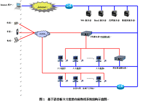 市府熱線(xiàn)系統(tǒng)是一個(gè)集合電話(huà)語(yǔ)音、計(jì)算機(jī)網(wǎng)絡(luò)、數(shù)據(jù)庫(kù)等技術(shù)的綜合信息服務(wù)平臺(tái),主要由自動(dòng)語(yǔ)音應(yīng)答系統(tǒng)、人工座席和數(shù)據(jù)庫(kù)系統(tǒng)三部分組成。