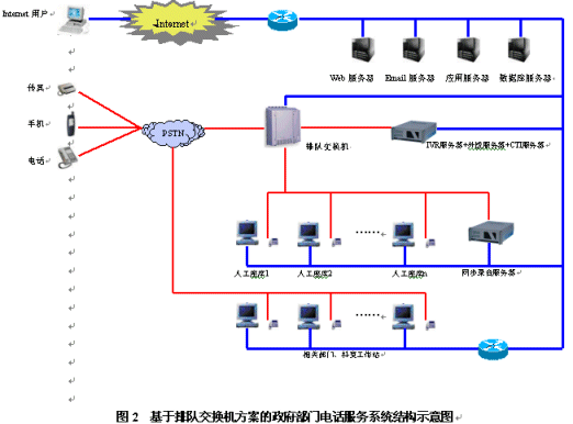 政府部門電話服務(wù)系統(tǒng)是一個(gè)集合電話語(yǔ)音、計(jì)算機(jī)網(wǎng)絡(luò)、數(shù)據(jù)庫(kù)等技術(shù)的綜合信息服務(wù)平臺(tái),主要由自動(dòng)語(yǔ)音應(yīng)答系統(tǒng)、人工座席和數(shù)據(jù)庫(kù)系統(tǒng)三部分組成。