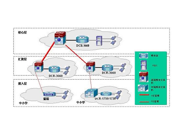 同時(shí),DCR-3660、DCR-2600系列路由器為增強(qiáng)教育城域網(wǎng)VoIP管理,提供內(nèi)置H.323網(wǎng)守功能,可以在區(qū)縣教委提供免費(fèi)本地網(wǎng)守,減輕市教委網(wǎng)守的壓力。