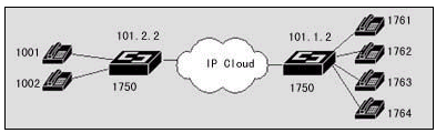 在該案例中,異地之間通過兩臺(tái)DCR 1750互連,并提供語(yǔ)音模塊,可直接接電話機(jī),使得異地之間可以通過IP網(wǎng)絡(luò)撥打IP語(yǔ)音電話。