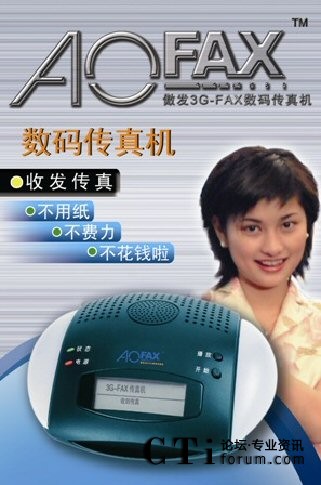 傲發(fā)3G-FAX也是唯一一個擁有全系列電子傳真機系列產(chǎn)品的品牌,產(chǎn)品包括免費使用的傲發(fā)3G-FAX傳真軟件A10、單電腦使用的數(shù)碼傳真機A20、4用戶環(huán)境的網(wǎng)絡(luò)傳真機A30、軍警使用的軍用傳真系統(tǒng)A50、政府公安部門使用的多路傳真群發(fā)系統(tǒng)A80X-GA、不限用戶數(shù)目的網(wǎng)絡(luò)傳真機A60、1至2線的大眾型傳真服務(wù)器A801和A802,2至256傳真線路多種規(guī)格的專業(yè)型傳真服務(wù)器A80X、跨區(qū)域大型公司使用的集團傳真系統(tǒng)和行業(yè)解決方案等。