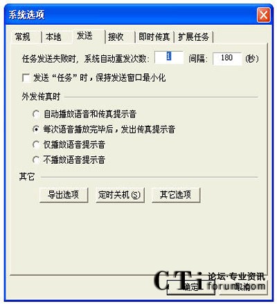 設置自動重發(fā)次數、重發(fā)間隔時間、語音提示、定時關機時間等。
