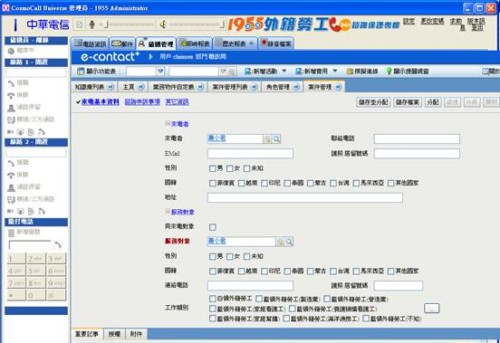 相信不久的將來,e-Contact+ 一定會(huì)成為各企業(yè)競(jìng)相爭(zhēng)購(gòu)的明星產(chǎn)品!截至目前,確認(rèn)導(dǎo)入此套產(chǎn)品的公司包含臺(tái)北縣政府的個(gè)案輔導(dǎo)管理、中華電信的客服活動(dòng)關(guān)懷軟體、1955外籍勞工24小時(shí)咨詢保護(hù)專線,這三家公司透過業(yè)務(wù)自行定義物件中的調(diào)整客制化欄位,使用基礎(chǔ)模組的客戶管理,再配合其他相關(guān)模組物件導(dǎo)入,讓工作流程與資料再單一畫面下容易被管理。