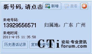 來電彈屏自動顯示對方號碼歸屬地數(shù)據(jù)信息;