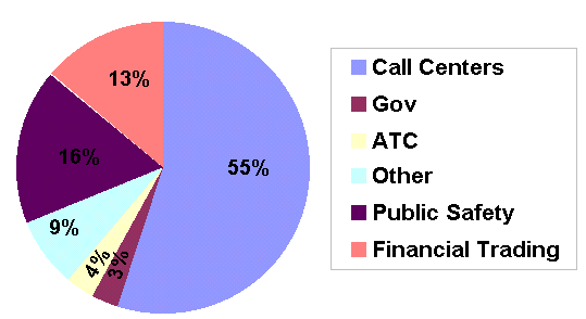根據(jù)Datamonitor分析,呼叫中心和呼叫錄音領(lǐng)域在采用基于IP網(wǎng)絡(luò)的解決方案上有增長(zhǎng)的趨勢(shì)。呼叫錄音市場(chǎng)在整個(gè)環(huán)境趨向VoIP技術(shù)和基于IP結(jié)構(gòu)的情況下,也在經(jīng)歷著相同的變革。呼叫錄音市場(chǎng)發(fā)展的關(guān)鍵取決于采用VoIP結(jié)構(gòu)。根據(jù)Datamonitor分析,呼叫錄音市場(chǎng)2003年?duì)I業(yè)額為9億美元,到2007年?duì)I業(yè)額將增長(zhǎng)到13億美元。其中呼叫錄音硬件解決方案將占整個(gè)市場(chǎng)的37%,呼叫錄音軟件解決方案將占整個(gè)市場(chǎng)的39%,其余為服務(wù)保障的費(fèi)用(圖二)。亞洲約占全球份額的12%。