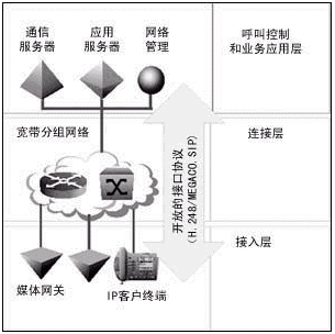 在接入層。各種媒體網(wǎng)關(guān)專(zhuān)職提供傳統(tǒng)終端的接入和與傳統(tǒng)網(wǎng)絡(luò)接口的功能,實(shí)現(xiàn)TDM與分組之間的轉(zhuǎn)換;新型的IP客戶(hù)終端則提供創(chuàng)新的、功能豐富的用戶(hù)界面。媒體網(wǎng)關(guān)和IP客戶(hù)終端還負(fù)責(zé)承載通道的建立功能,通過(guò)H.248/MEGACO、SIP等開(kāi)放的接口協(xié)議在通信服務(wù)器和應(yīng)用服務(wù)器的控制和協(xié)調(diào)下為媒體流建立滿(mǎn)足服務(wù)質(zhì)量要求的承載通道。
