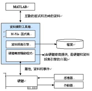 數(shù)據采集工具箱包括三個模塊分別為: M-File 函式集, 數(shù)據采集引擎(Data Acquisition