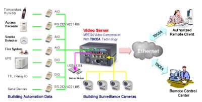 因此我們認(rèn)為在遠(yuǎn)程安全監(jiān)控系統(tǒng)上結(jié)合數(shù)據(jù)加/解密的技術(shù)己經(jīng)是一個(gè)絕對必要的程序,如圖4所示則是目前我們所提出的MPEG-4的影像壓縮技術(shù)結(jié)合TDCEA的加/解密技術(shù)可應(yīng)用在數(shù)字遠(yuǎn)程安全監(jiān)控系統(tǒng)(Digital