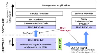 由圖二我們可以看出,IPMI的界面以及上層的管理都需求一些軟件來支持,以下將簡略的描述IPMI所涉及到的軟硬件種類: