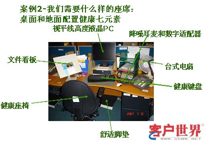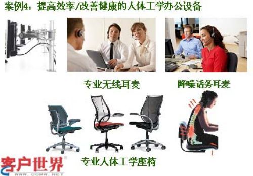 還有一個話題是健康座席怎么去配備,我主張七個元素,這個是在英國學(xué)到的,英國的話務(wù)員他們每個人都干到40歲,他們可以從20歲-40歲還沒有厭倦這個行業(yè)和崗位,他們認(rèn)為這個工作不是天天疲于應(yīng)付,或者說強(qiáng)度非常高而產(chǎn)生很大壓力的工作,他們很熱愛自己的工作,你看他們有很舒服的座椅,還有腳墊,女孩子如果注意保養(yǎng)自己身材的話,要經(jīng)常有機(jī)會站起來,保持一種站立狀態(tài)去工作,包括有一些電扇、健康的鼠標(biāo)、鍵盤、降噪耳機(jī),等等,包括視頻顯示液晶屏都可以讓客服代表享受輕松的工作感受,不會因?yàn)槠诙a(chǎn)生厭倦,這種厭倦來的非常晚,當(dāng)一個員工在一個新的崗位工作超過一年以后,在他的厭倦感來臨之前我們已經(jīng)幫他調(diào)整好這種心態(tài)和適應(yīng)力,可能他的厭倦感會一直不來,這樣的話我們就可以很長時間保有一個有經(jīng)驗(yàn)的優(yōu)秀客服代表,為公司節(jié)省很多成本,這樣的工作是非常舒服的。
