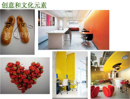 左下邊的這個圖是我自己非常喜歡的,就是在一個咖啡館里面,用一些番茄、一些小的辣椒和一些草莓搭成這樣一個形狀。上面大家看是鞋子,其實(shí)是兩塊面包把中間挖空了,鞋帶是巧克力,用這種方式來調(diào)動別人在咖啡館里面的食欲。我們在話房里面是一樣的,要讓客服代表,特別是那個年齡段20-25歲之間年輕的男孩子和女孩子們喜歡,甚至他們有一種重回學(xué)校的感覺都可以。所以這里面不用花太多的心思可以有很好的創(chuàng)意。在這個話房的設(shè)計(jì)當(dāng)中,覺得從環(huán)境的角度和自己能夠著手去改變的角度來看,已經(jīng)可以把你得話房做出自己的特色,就像我們在自己家里裝修一樣,可以有不同的色彩,也可以由不同的結(jié)構(gòu),當(dāng)然需要滿足公司給你預(yù)算的要求。